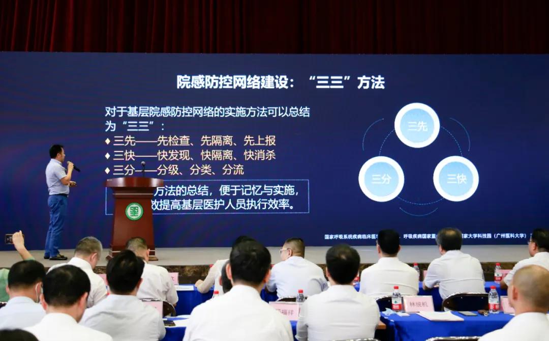 廣州呼研所醫(yī)藥科技有限公司營銷總監(jiān)林統(tǒng)機針對基層呼吸系統(tǒng)傳染病防控體系的建設向與會各界人士進行了重點推介。